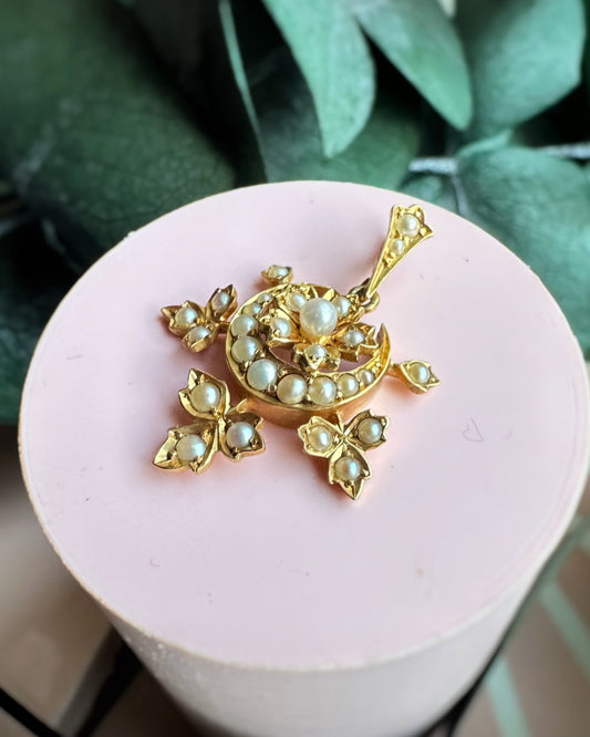 Exceptional Pearl Set Antique Crescent Pendant