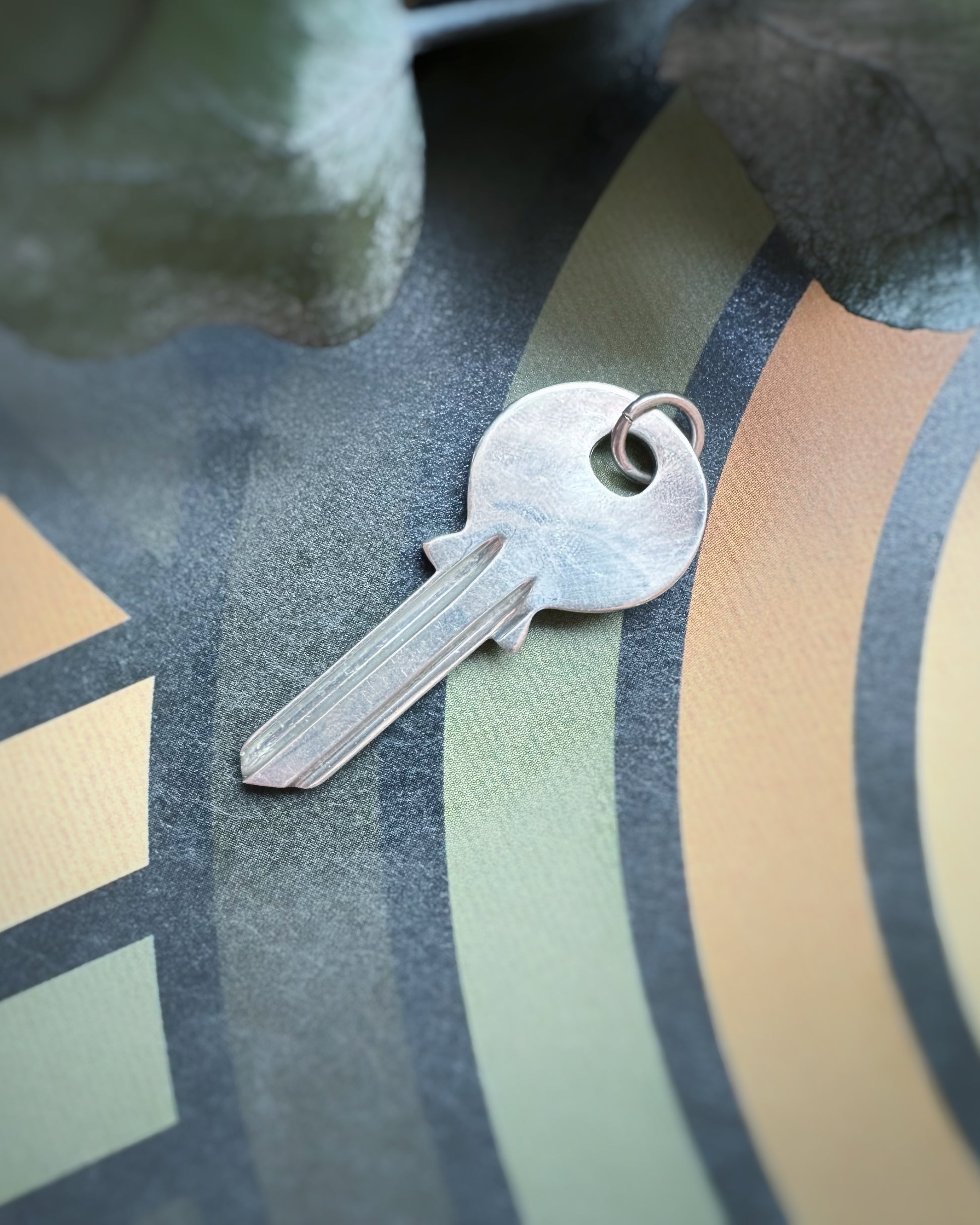 I love this for mega dollop of texture in your stack. This chunky and solid key charm is such a fun pop and made even better with the statement, oversized hallmark. Keys symbolise opening doors to opportunities, freedom, and new beginnings, as well as representing knowledge, success, and love, particularly in romantic contexts.