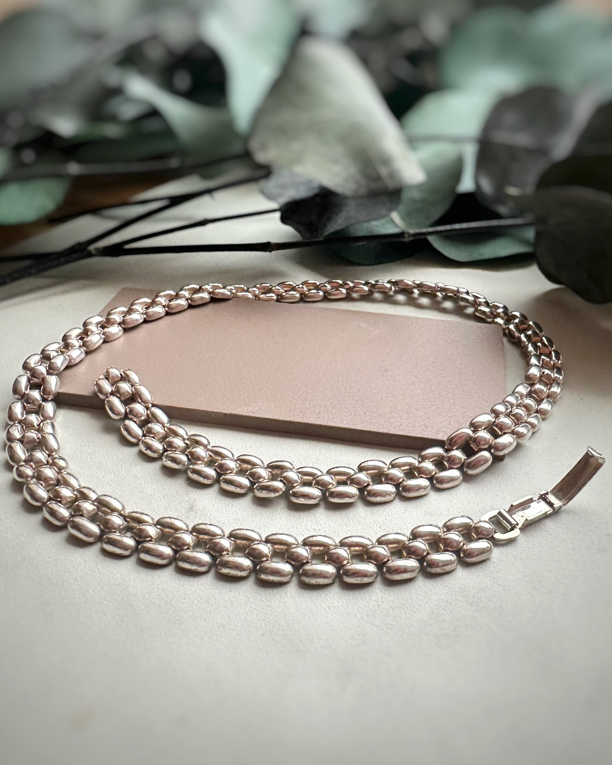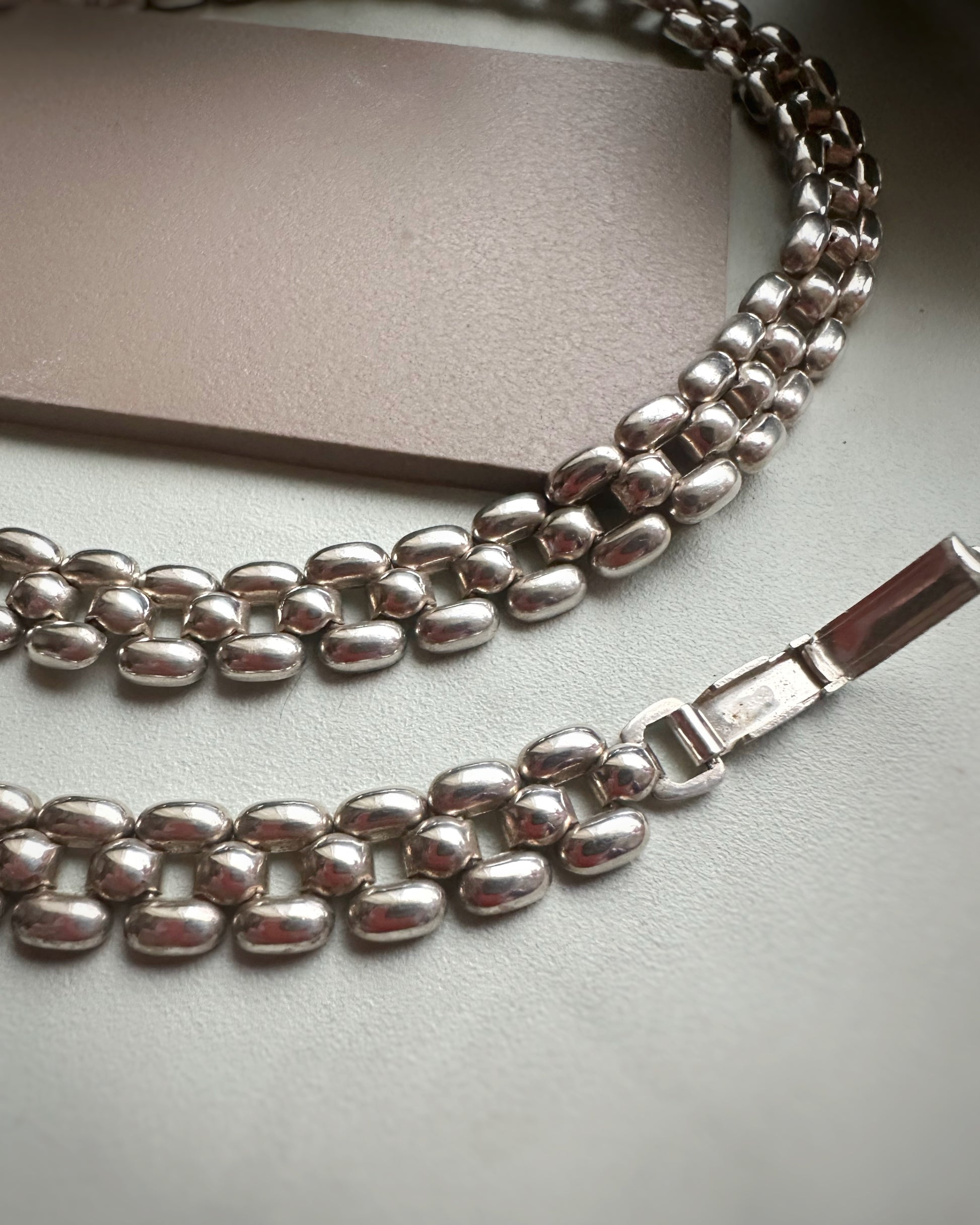 THE MOVEMENT. You just can't not absolutely love the movement - the slink, the undulation - of a panther link. The perfect statement piece - she's big and bold but still so chic. You can dress them up, dress them down. Pair with gold for best results. This one is in perfect condition, with no catching or grinding, the links move seamlessly and are still tight and straight. An easy-to-operate clasp finishes her off just right.